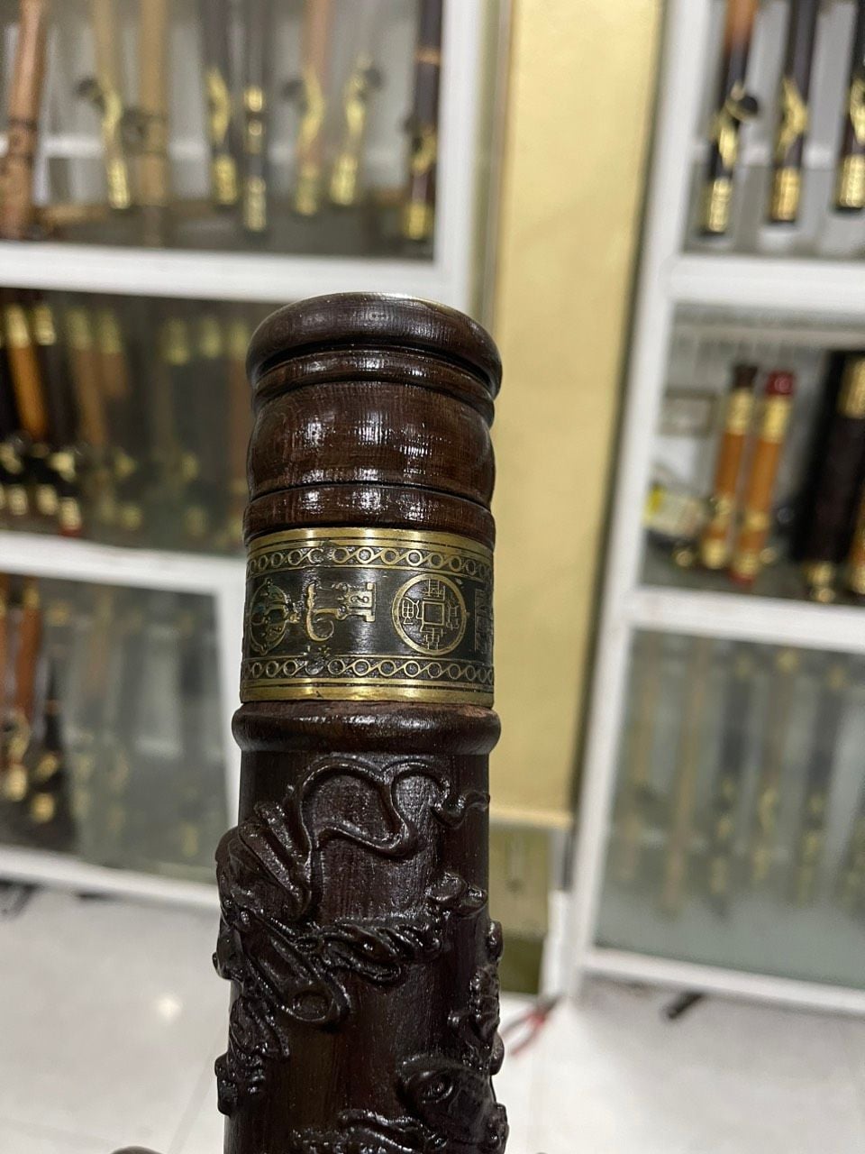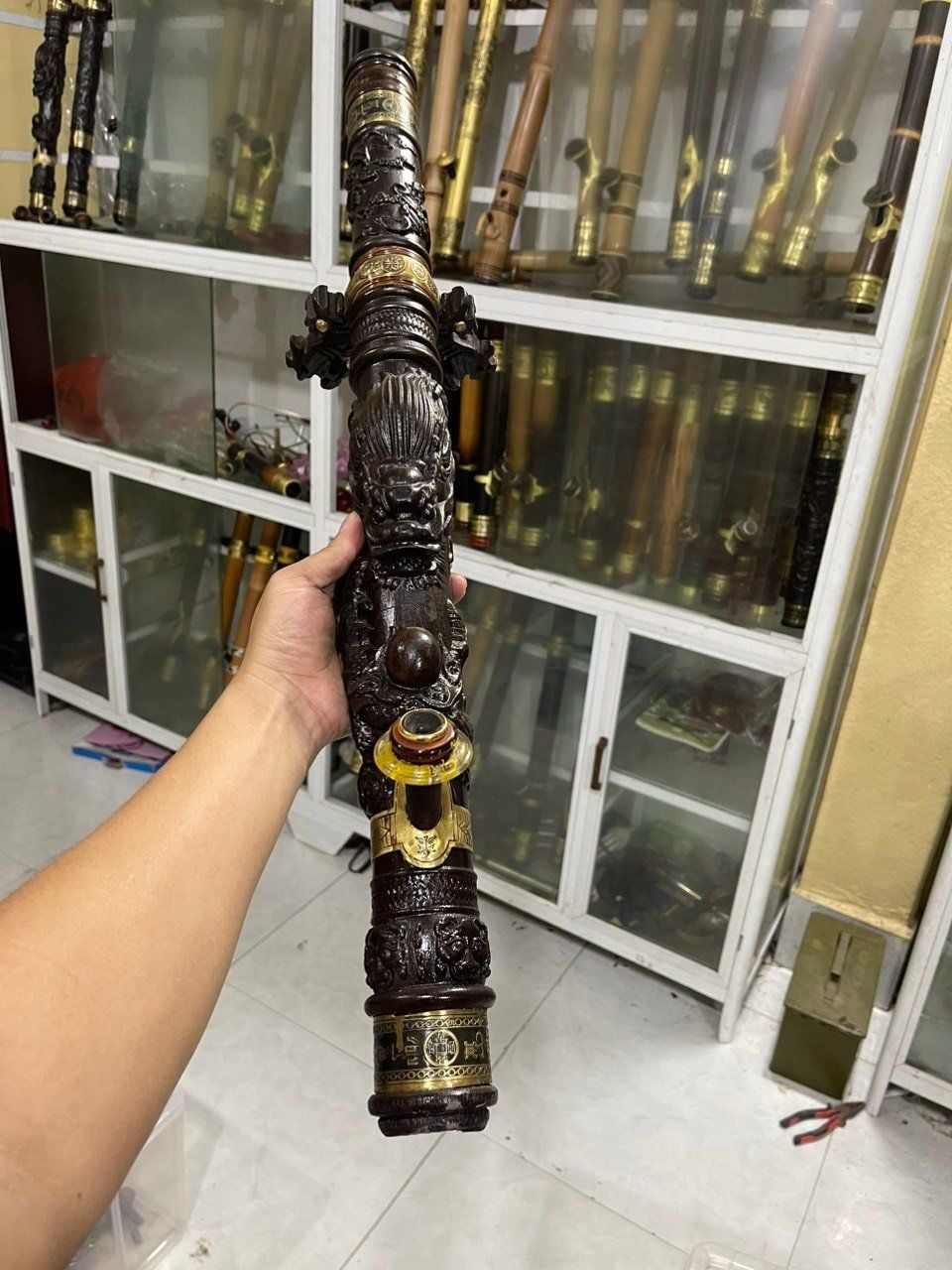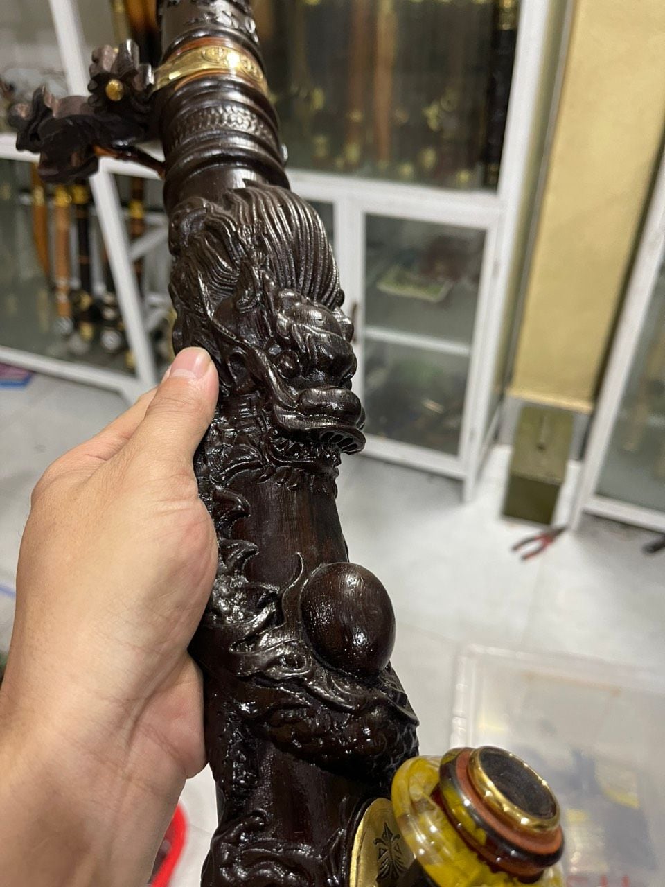 Điếu gỗ mun đục rồng