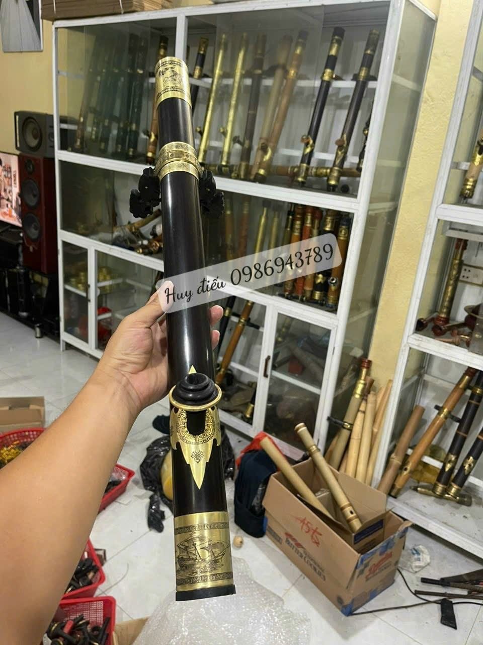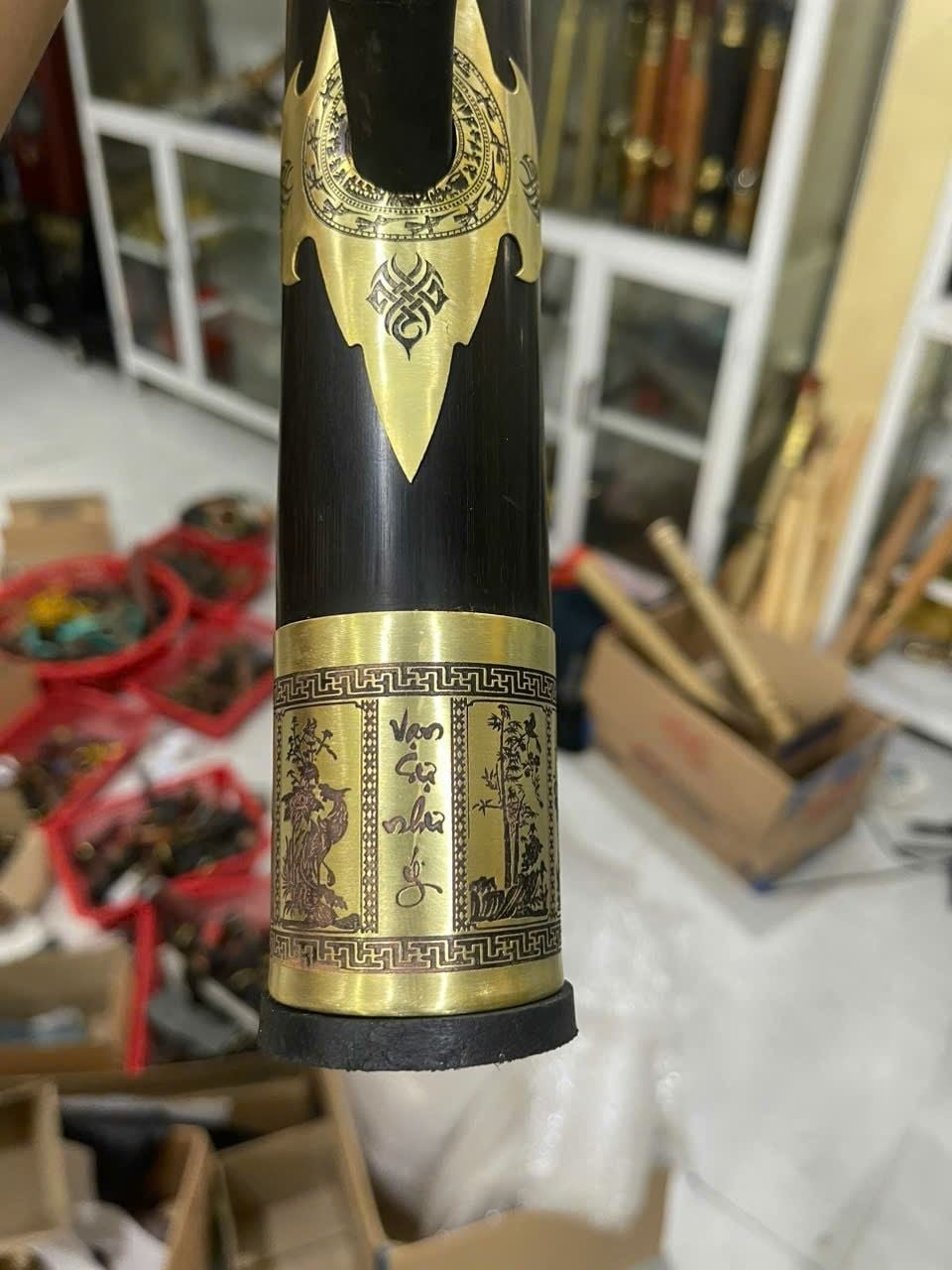 Điếu trúc bọc đồng hoa văn chìm